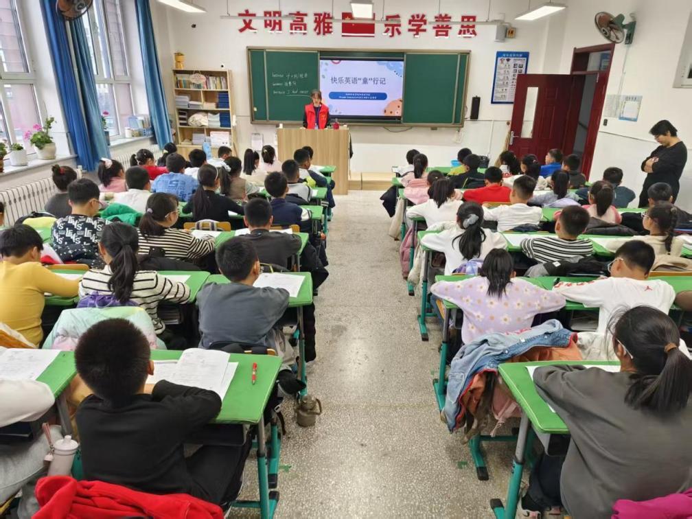 支教团扎根朝阳市双塔区第一实验小学,常态化开展“快乐英语‘童’行记”公益课程,每周授课一次。课堂上,成员紧扣知识点答疑解惑、拆解学习难点;课下细致批改作业,并与校内教师交流教学方法、探讨教学心得。长期教学让团队积累了贴合小学生认知特点的丰富经验,既让孩子们轻松感受英语魅力,也为后续寒假支教筑牢基础。