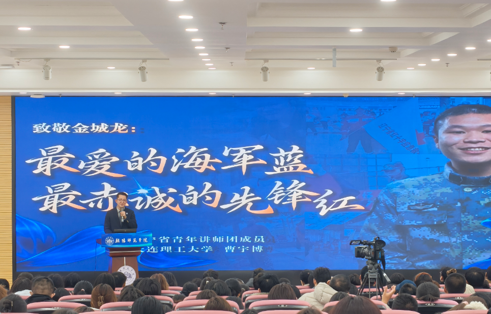 宣讲现场温情涌动、直抵人心。来自辽宁不同城市、不同行业的四位青年讲师,用身边人讲身边事。葫芦岛市绥中县公安局网络安全保卫大队副大队长冯晶,扎根反诈一线,既是暖心大姐也是硬核警花,五年坚守守护群众平安;中国(沈阳)工业博物馆讲解员于泽玄立足工业底蕴,讲述第一枚金属国徽等工业故事,诠释攻坚克难的奋斗精神;中国移动通信集团辽宁有限公司朝阳分公司团委书记杨华,以一封真挚书信为引,讲述青年通信人坚守岗位、用科技服务民生的初心使命;大连理工大学博士生宣讲团团长曹宇博用一个个真实的数字讲述金城龙的感人故事,号召青年们以赤诚担当诠释青年使命,在场同学们深受触动,备受鼓舞。